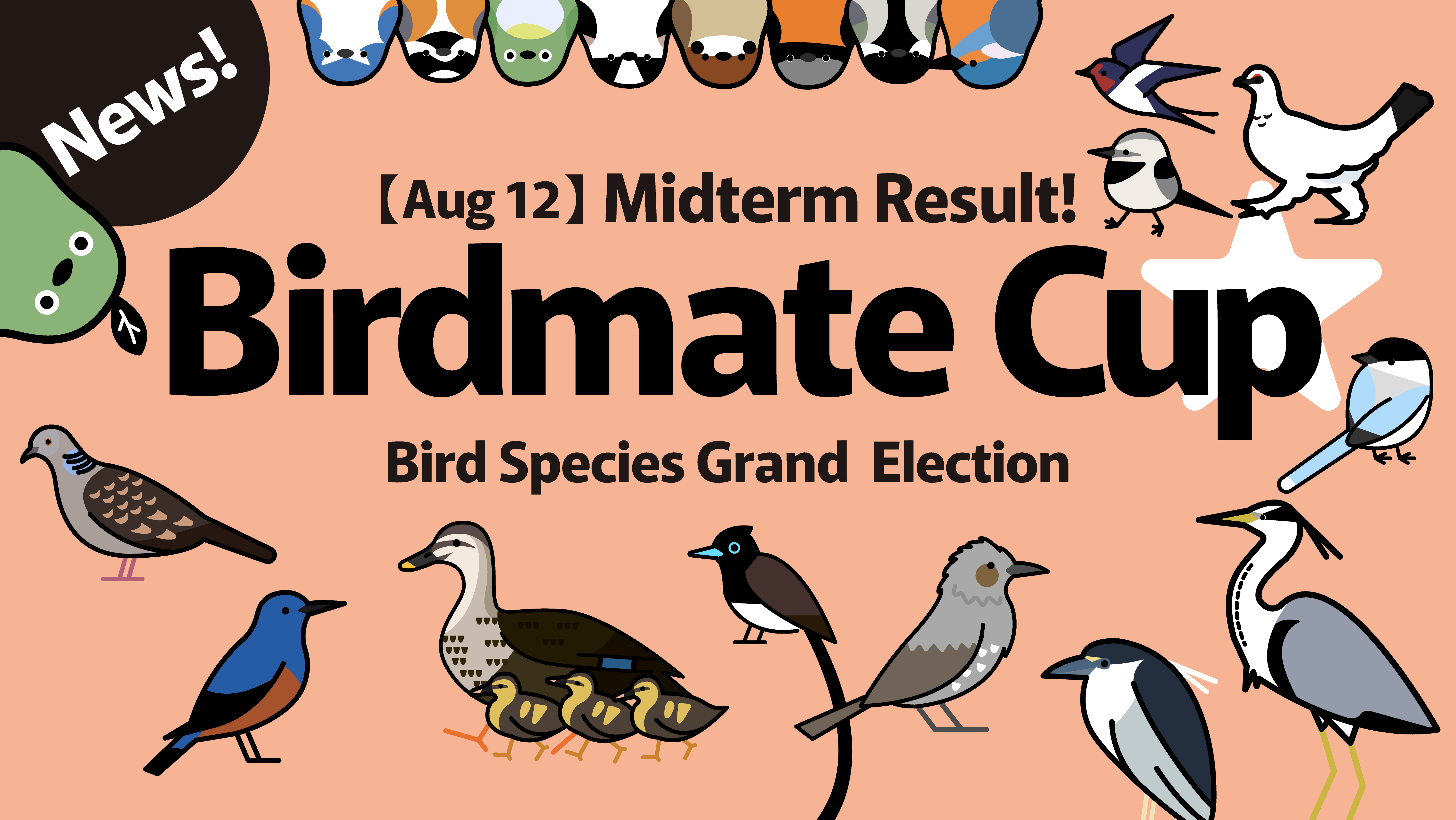 Everyone, we have another update! The mid-term report for the ‘Birdmate Cup★’ as of August 12th has been announced. The total number of votes has reached 2,633, and the competition is heating up even more! Now, let’s take a look at the latest top rankings.